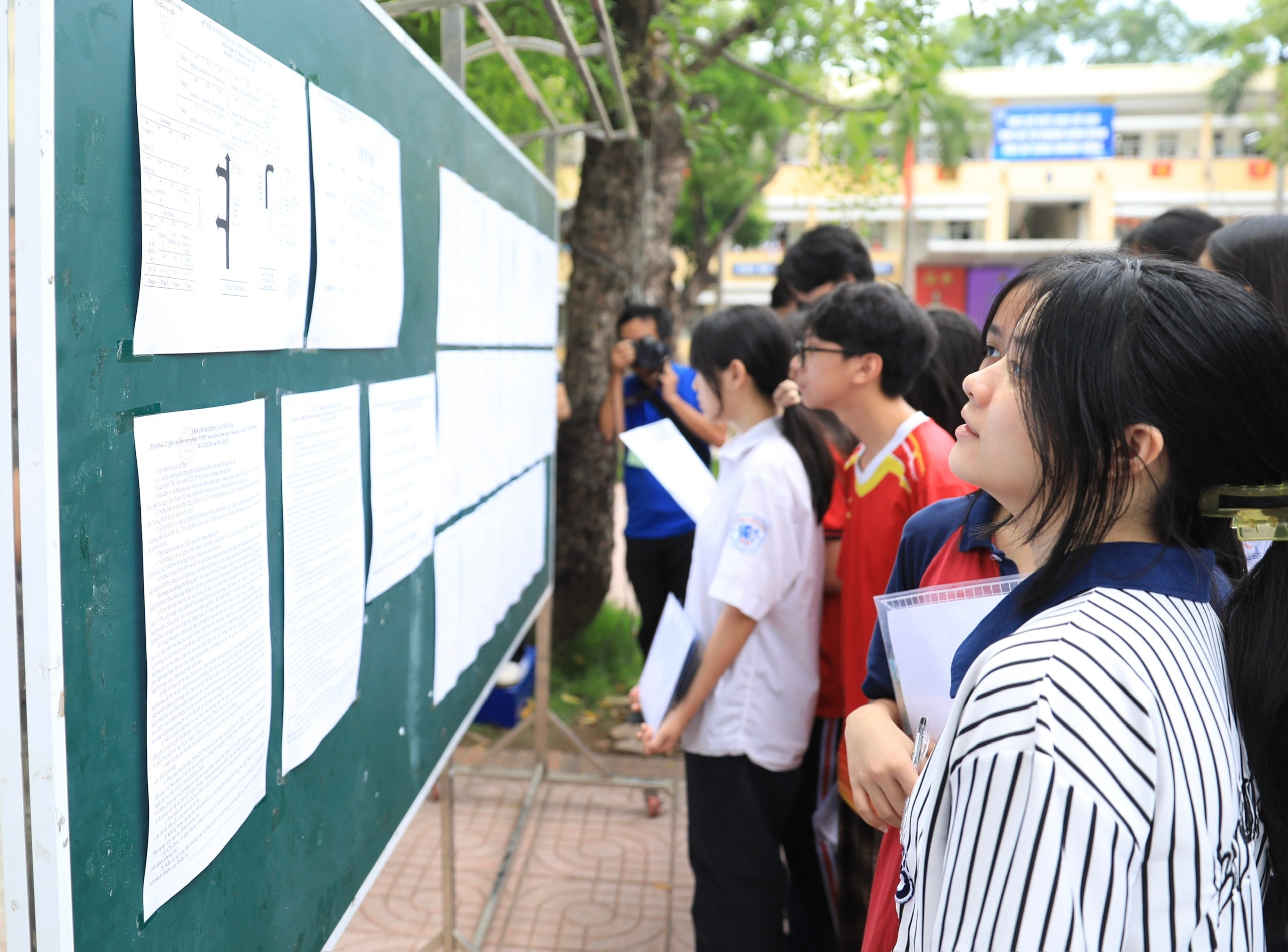 Các thí sinh tìm hiểu thông tin kỳ thi tuyển sinh lớp 10. Ảnh: Quang Thái