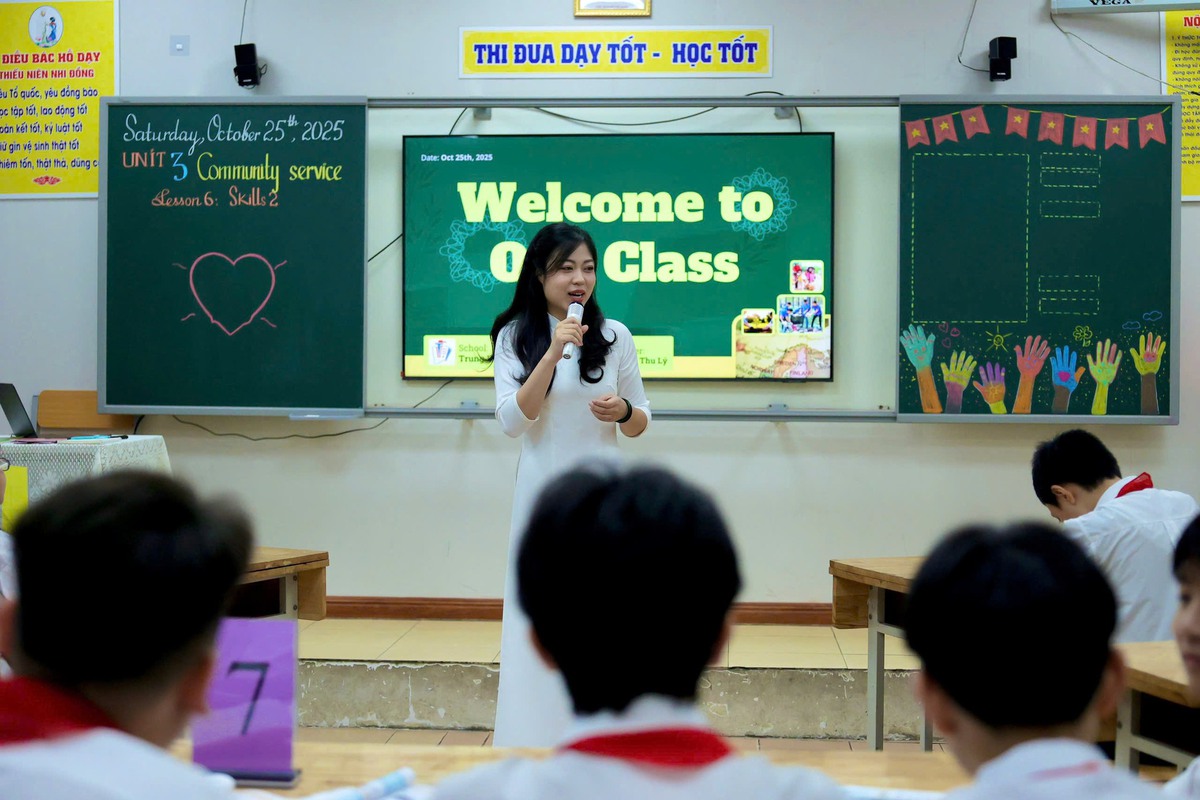 Một tiết học Tiếng Anh của học sinh trường THCS Trưng Vương, Hà Nội. Ảnh: NTCC