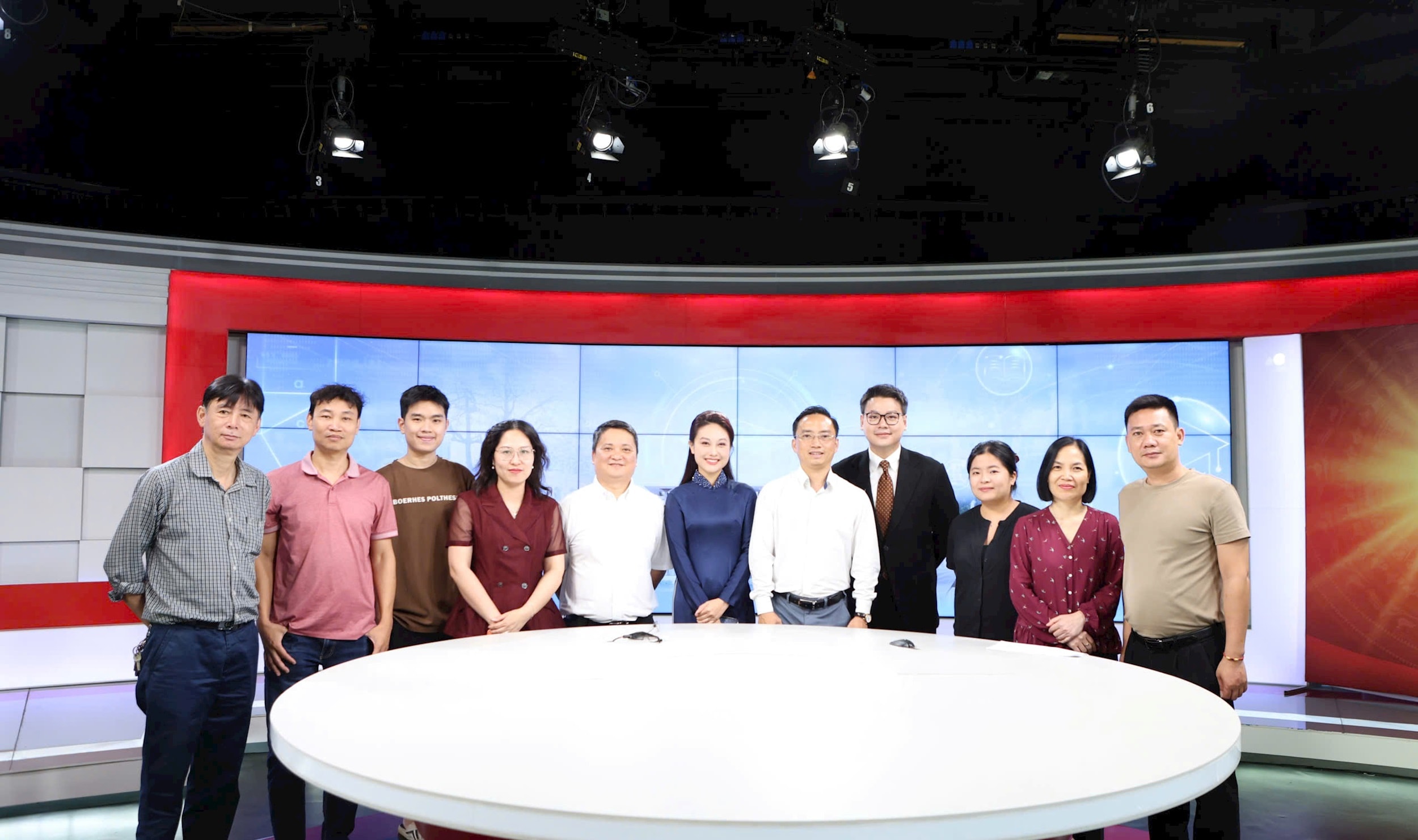 Các khách mời và ê kíp thực hiện Chương trình thời sự “Tuyển sinh lớp 10 tại Hà Nội: Giảm áp lực, mở rộng lựa chọn. Ảnh: Thanh Hải