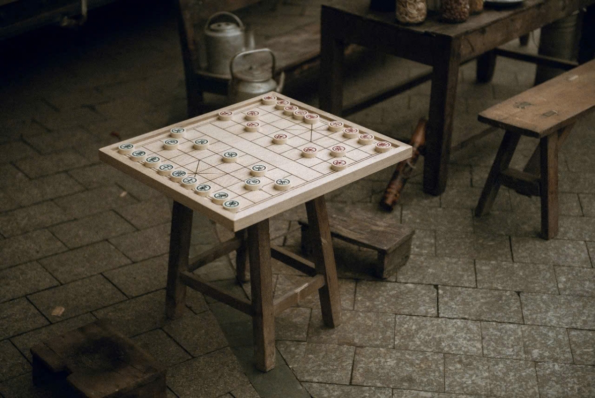Góc bàn cờ tướng tạo nên một mảng ký ức sống động, tái hiện hình ảnh những buổi trưa hè, khi các ông, các bác tụ tập dưới gốc bàng bên vỉa hè Hà Nội xưa.