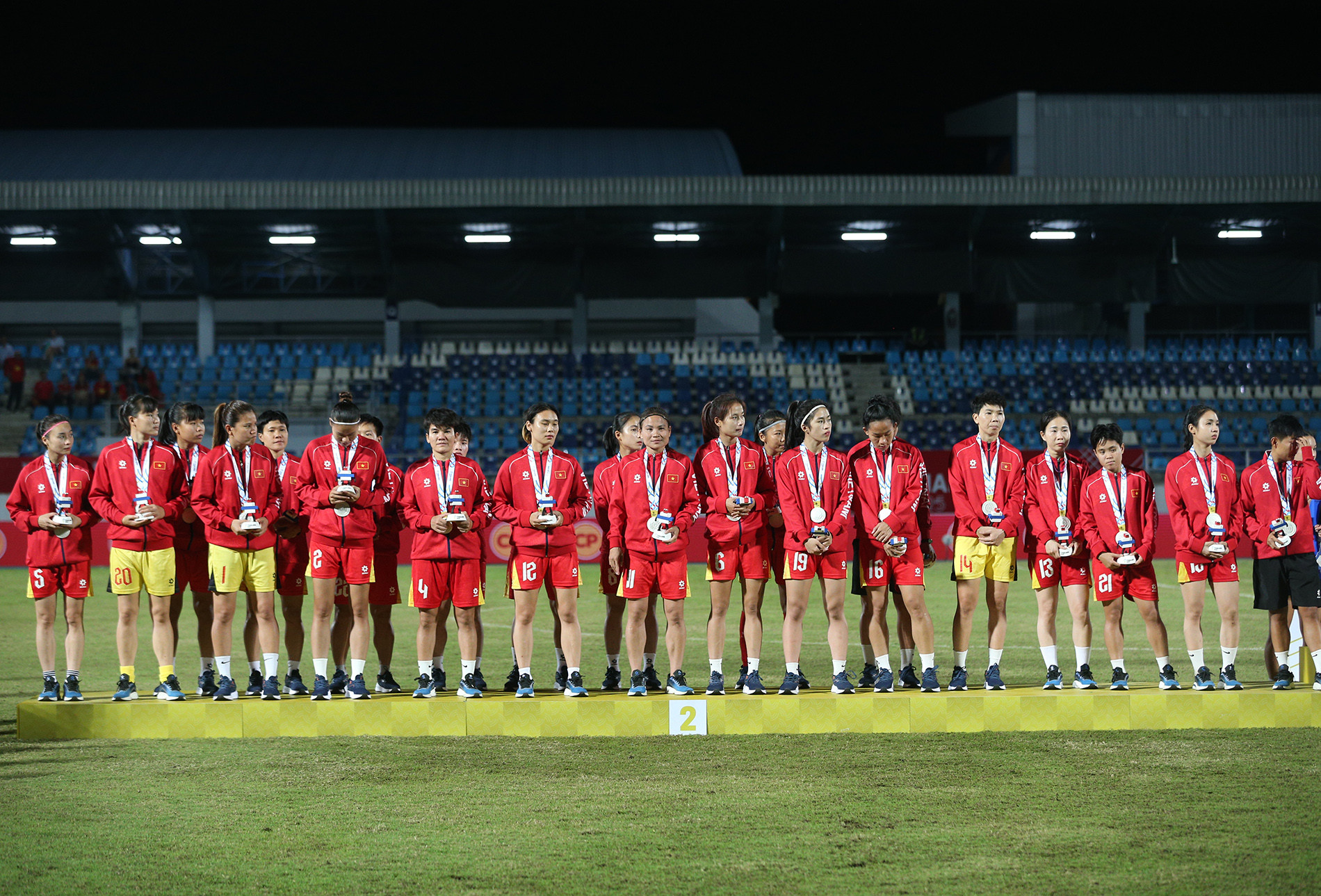 Trong khi các cầu thủ nữ Việt Nam rất buồn vì không bảo vệ được tấm HCV SEA Games.