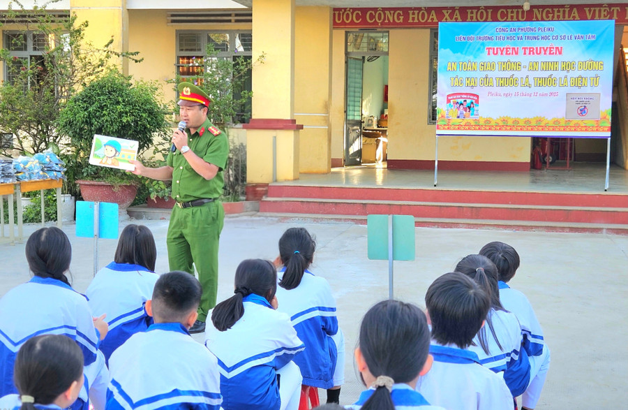 Tại chương trình, cán bộ Công an phường Pleiku đã hướng dẫn học sinh những kiến thức cơ bản về an toàn giao thông, kỹ năng phòng tránh các nguy cơ mất an ninh học đường, đồng thời cung cấp thông tin về tác hại của thuốc lá và thuốc lá điện tử đối với sức khỏe. Qua đó, các em được trang bị kiến thức tự bảo vệ bản thân, góp phần xây dựng môi trường học đường an toàn, lành mạnh.