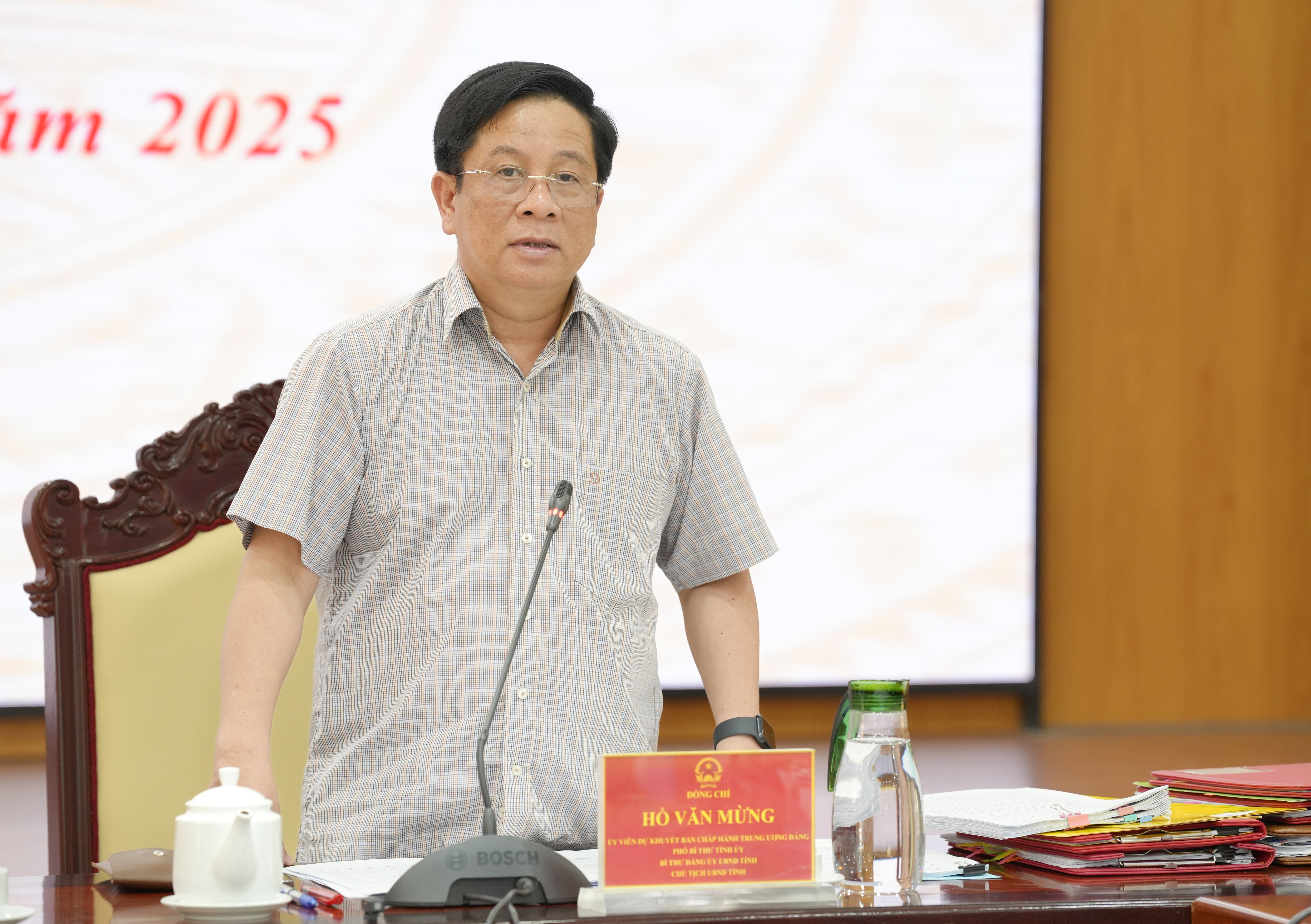 Chủ tịch UBND tỉnh An Giang Hồ Văn Mừng phát biểu tại cuộc họp - Ảnh: NAM KHÔI