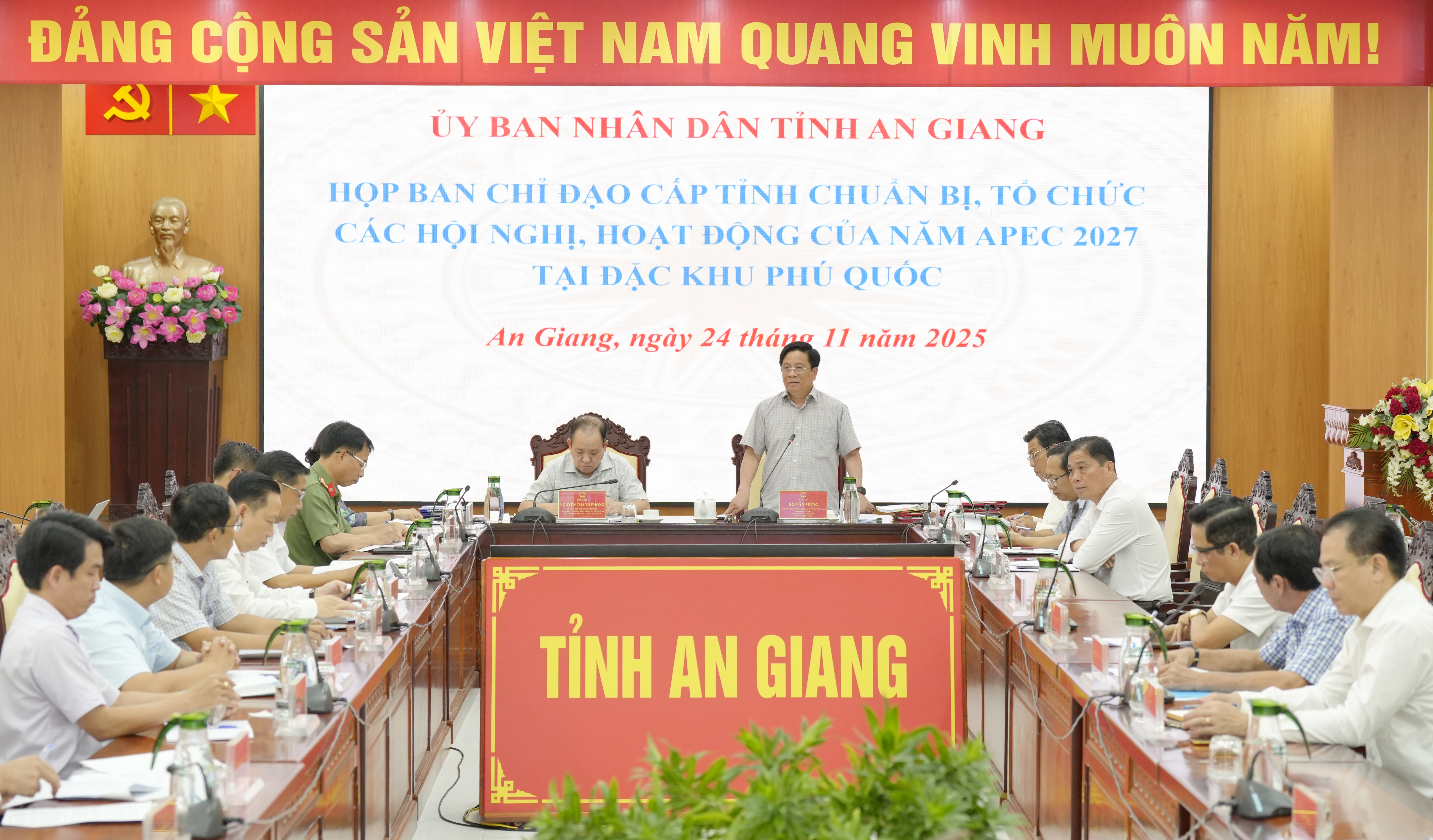 Chiều 24-11, Ban Chỉ đạo cấp tỉnh chuẩn bị, tổ chức các hội nghị, hoạt động của năm APEC 2027 tại đặc khu Phú Quốc (tỉnh An Giang) tổ chức cuộc họp nghe báo cáo tiến độ triển khai các tiểu đề án và công trình, dự án hạ tầng phục vụ Hội nghị APEC 2027.