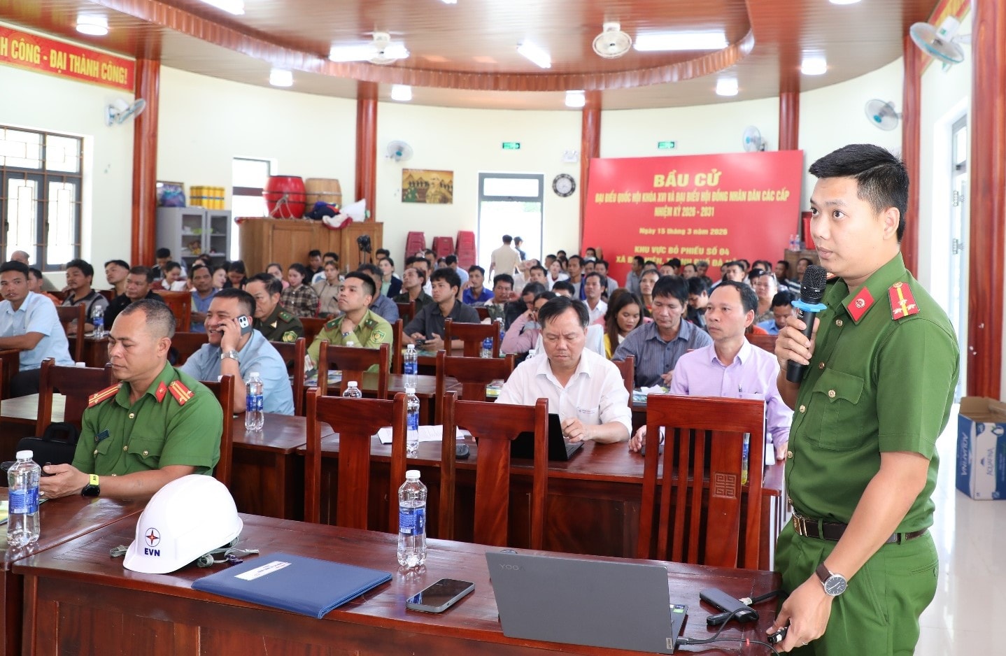 Công an xã Bến Hiên tuyên truyền phòng cháy chữa cháy cho cán bộ, người dân vùng dự án. Ảnh: VĂN LÃM