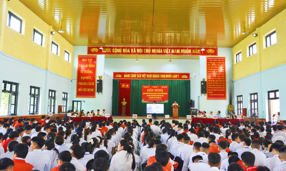 Các đại biểu dự chương trình tại Trường Trung học phổ thông Yên Dũng số 2.