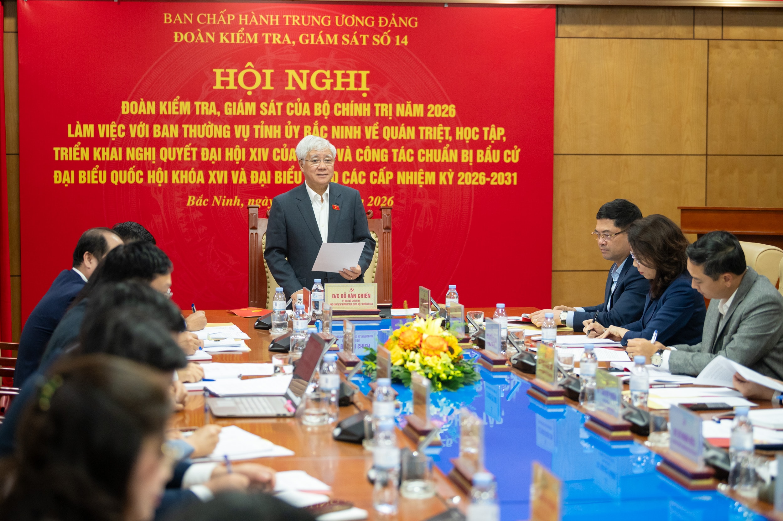 Phó Chủ tịch Thường trực Quốc hội Đỗ Văn Chiến làm việc Ban Thường vụ Tỉnh ủy Bắc Ninh về công tác bầu cử. Ảnh: Phạm Thắng