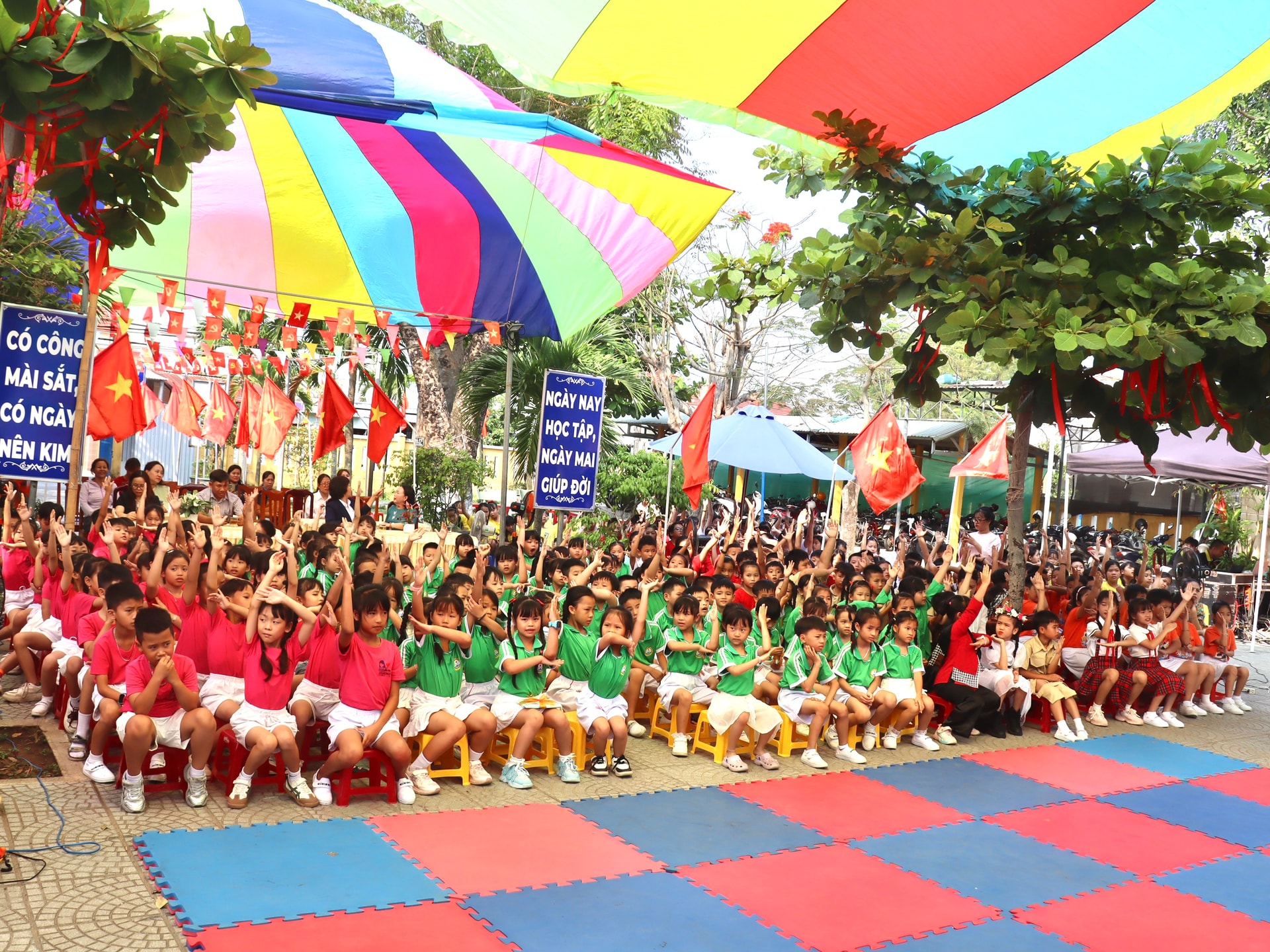 Học sinh Trường Tiểu học Đỗ Trọng Hường sôi nổi tương tác trả lời câu hỏi. Ảnh: QUỐC TUẤN