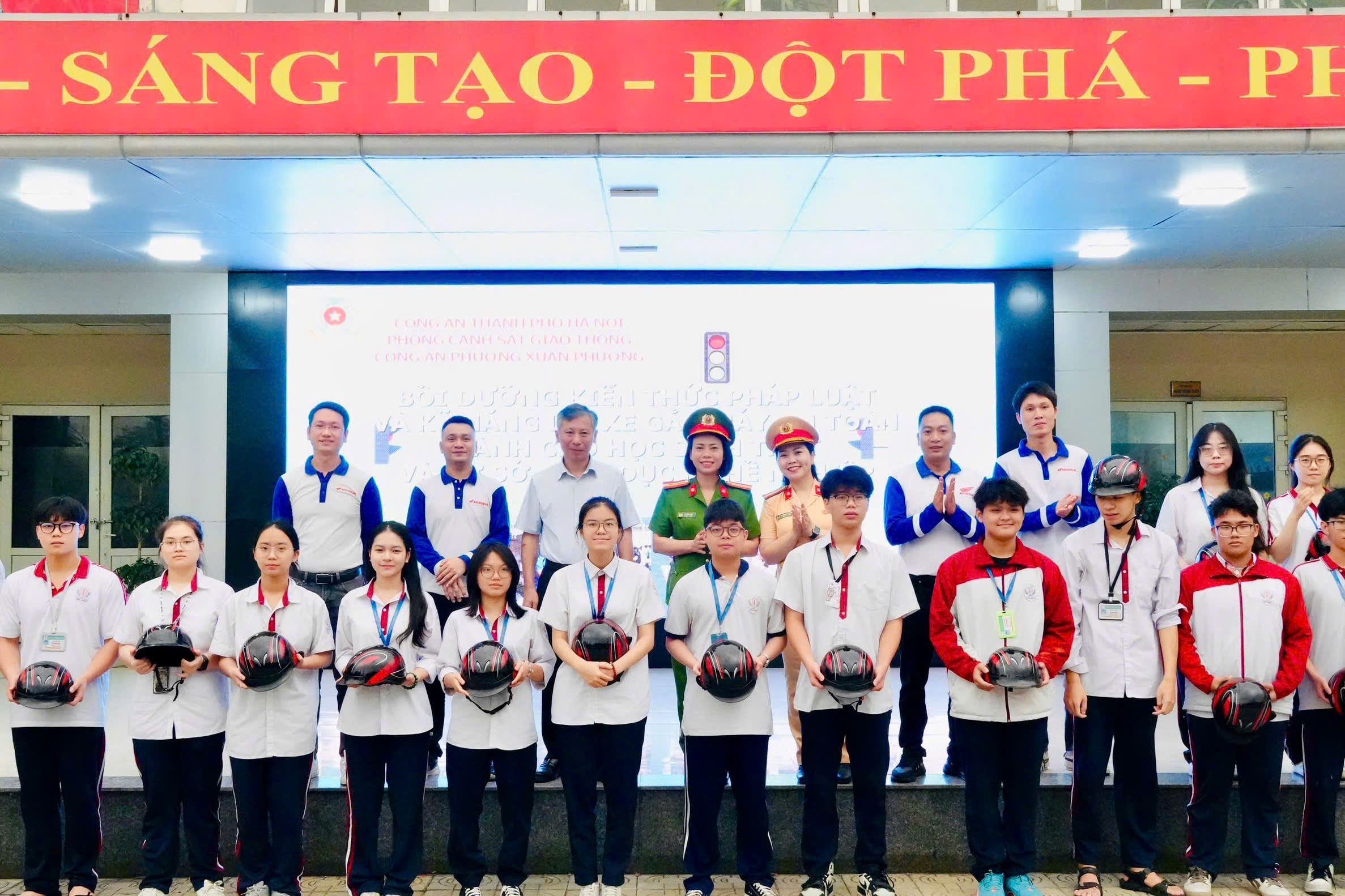 Nhân dịp này, Ban Tổ chức đã trao tặng mũ bảo hiểm và nhiều phần quà học tập cho các học sinh tiêu biểu, qua đó động viên các em tích cực học tập và chấp hành tốt quy định khi tham gia giao thông.