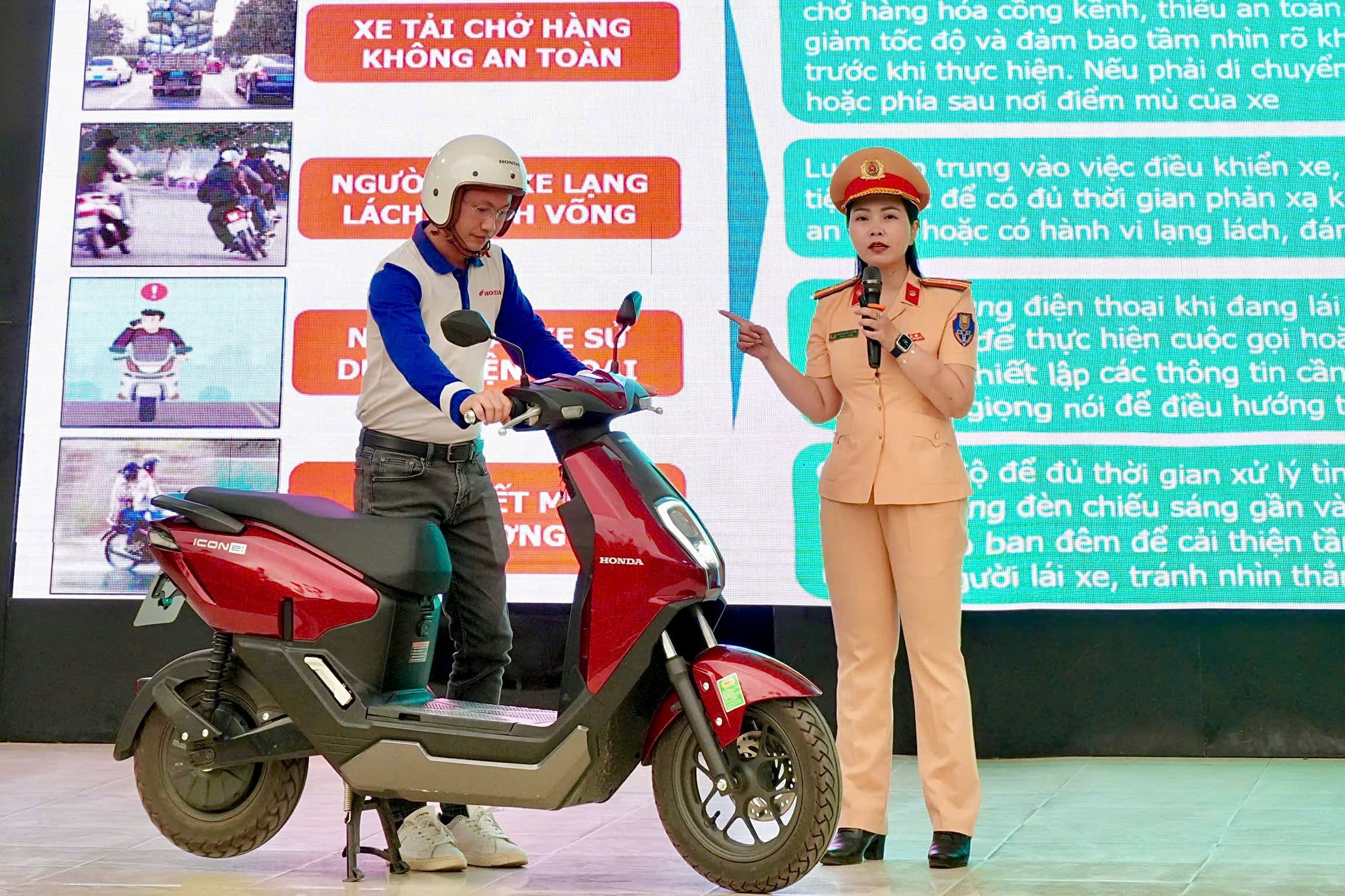 Cũng trong chương trình, các em học sinh từ đủ 16 tuổi trở lên đã được hướng dẫn và thực hành kỹ năng điều khiển xe gắn máy, xe máy điện an toàn dưới sự hướng dẫn trực tiếp của cán bộ CSGT và kỹ thuật viên.