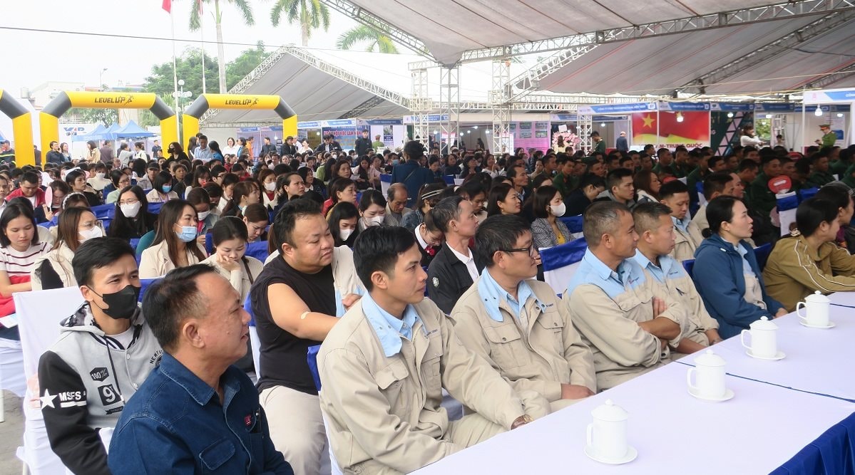 Đông đảo cán bộ, đoàn viên, người lao động và quân nhân dự hội nghị.