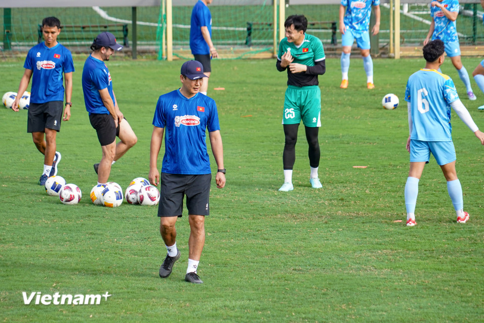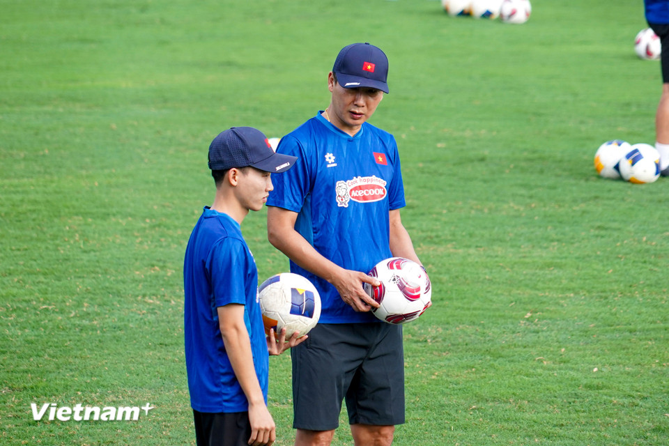 Đây là thời gian để huấn luyện viên trưởng Kim Sang-sik cùng Ban huấn luyện rà soát lực lượng và điều chỉnh chiến thuật trước thềm giải đấu chính thức. (Ảnh: Việt Anh/Vietnam+)