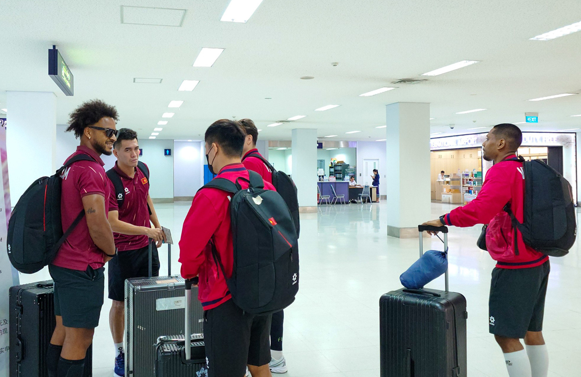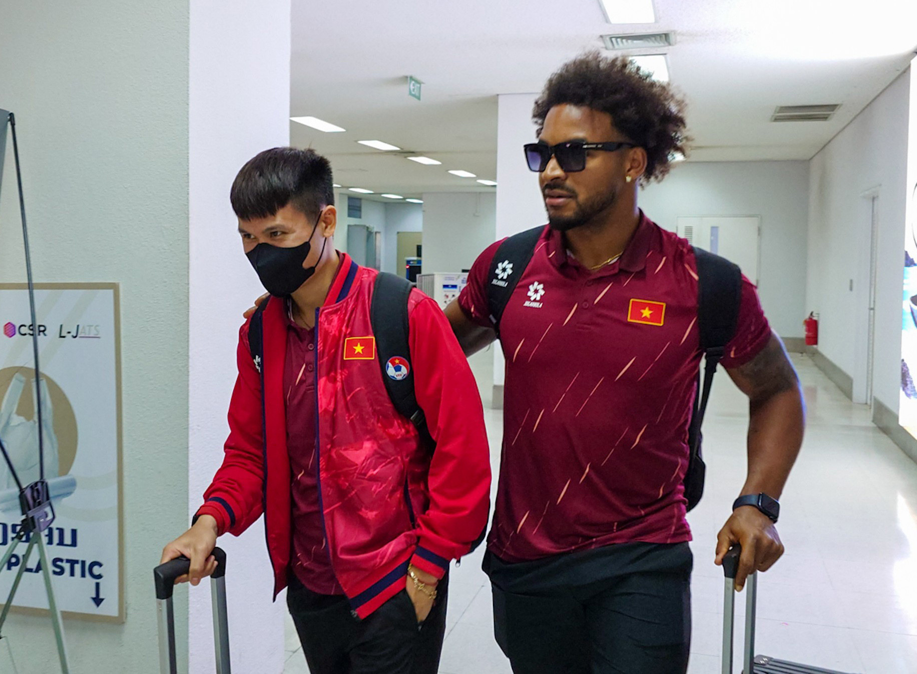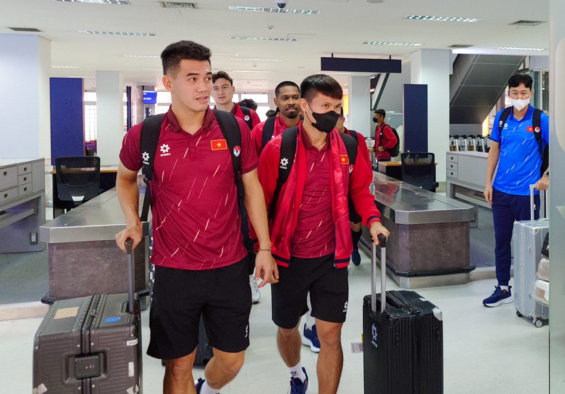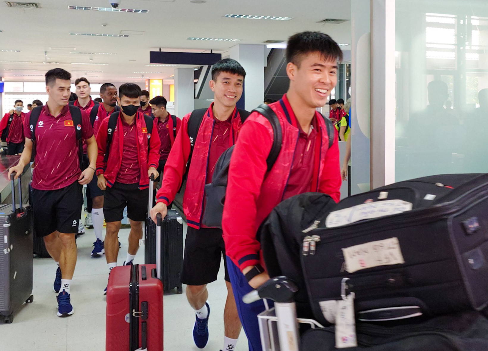 Sau khoảng 1 tiếng bay, tuyển Việt Nam đặt chân tới sân bay quốc tế Wattay tại Thủ đô Vientiane (Lào).