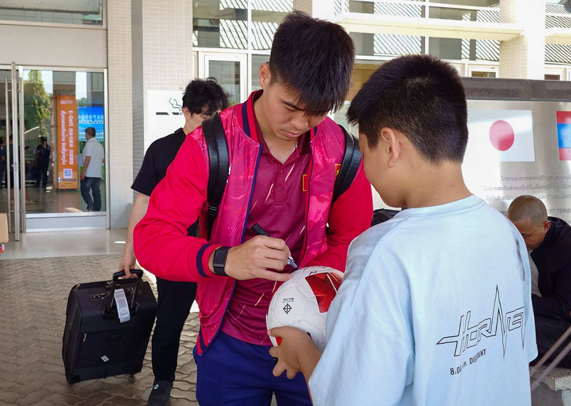 Duy Mạnh ký tặng người hâm mộ ở sân bay.