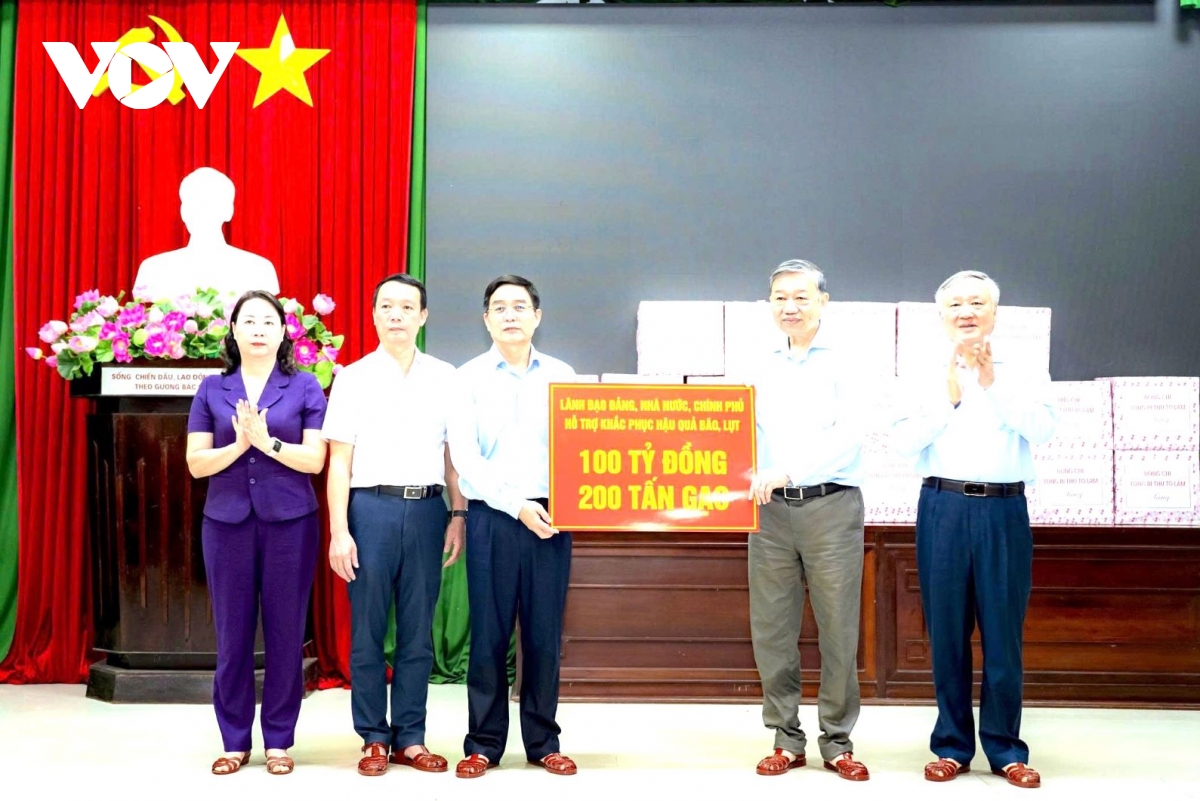 Tổng Bí thư Tô Lâm trao lãnh đạo thành phố Huế 100 tỷ đồng và 200 tấn gạo để hỗ trợ cho người dân bị ảnh hưởng lũ lụt lớn vừa qua
