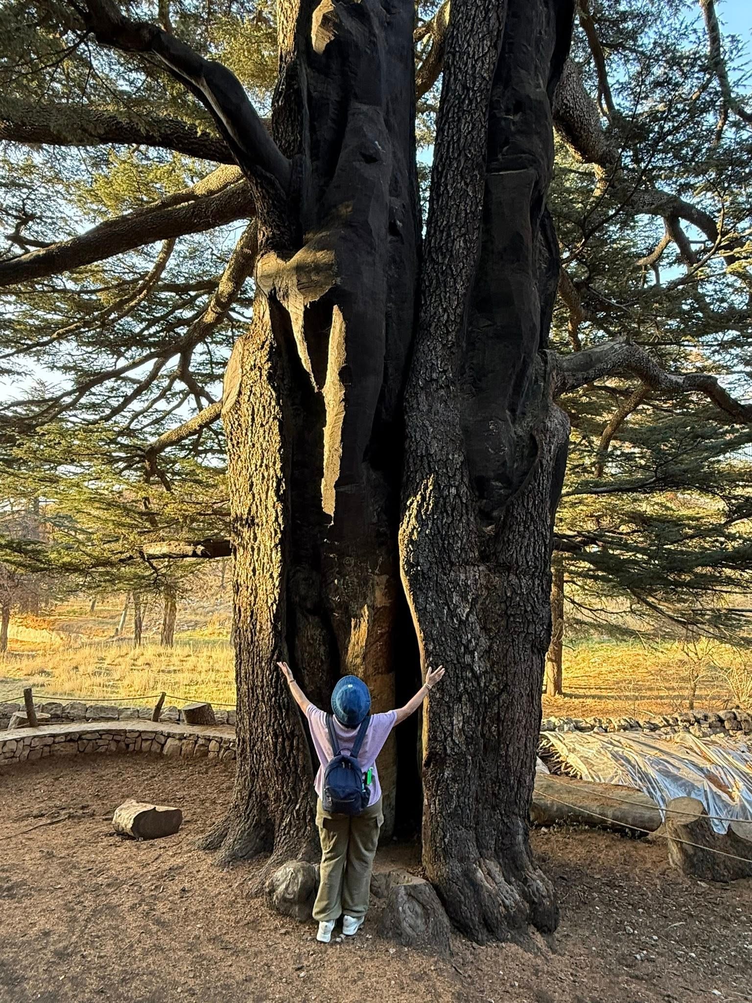 Du khách Việt trước một cây tuyết tùng cổ thụ Lebanon
