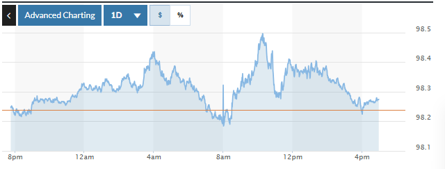 Biểu đồ biến động Chỉ số DXY trong 24 giờ qua. Ảnh: Marketwatch