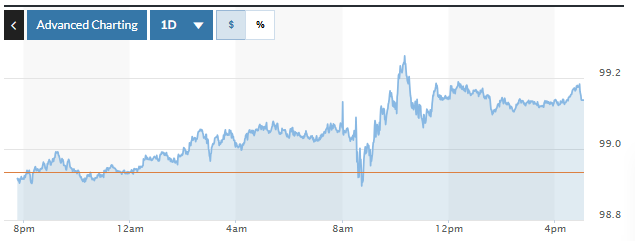 Biểu đồ biến động Chỉ số DXY trong 24 giờ qua. Ảnh: Marketwatch