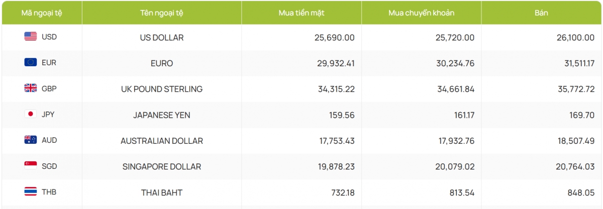Còn ACB bắt đầu hôm nay giao dịch với 25.700 đồng/USD mua vào và 26.090 đồng/USD bán ra, không điều chỉnh mới kể từ kết thúc làm việc phiên trước..
