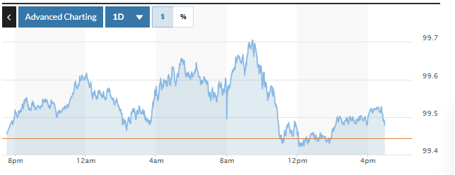 Biểu đồ biến động Chỉ số DXY trong 24 giờ qua. Ảnh: Marketwatch