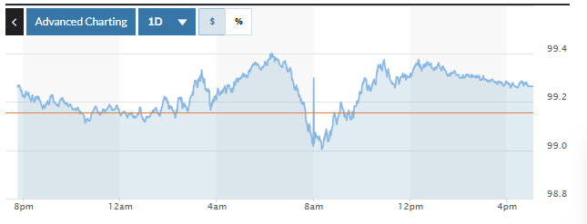 Biểu đồ biến động Chỉ số DXY trong 24 giờ qua. Ảnh: Marketwatch