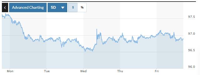 Biểu đồ biến động Chỉ số DXY trong tuần qua. Ảnh: Marketwatch