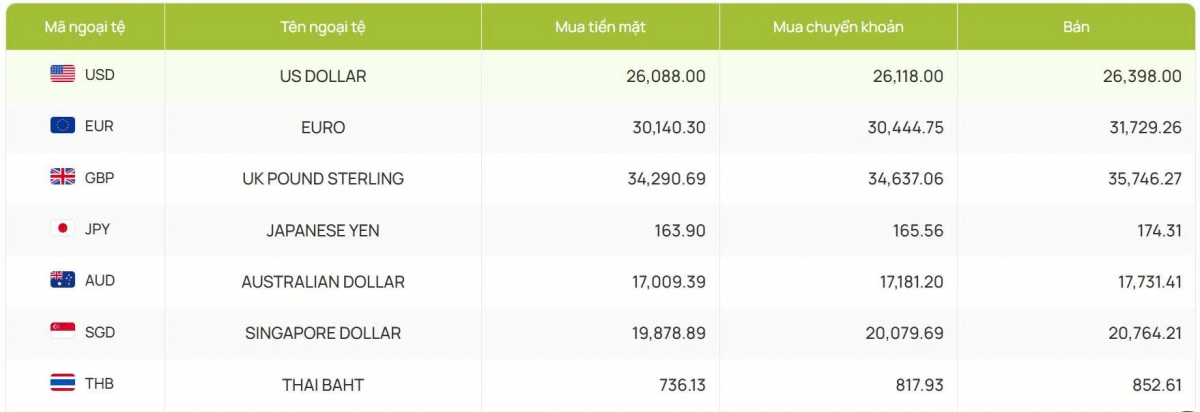 Còn ACB bắt đầu hôm nay với 26.120 đồng/USD mua vào và 26.398 đồng/USD bán ra, so với phiên trước đã giảm 3 đồng chiều bán.
