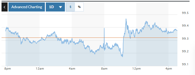 Biểu đồ biến động Chỉ số DXY trong 24 giờ qua. Ảnh: Market watch