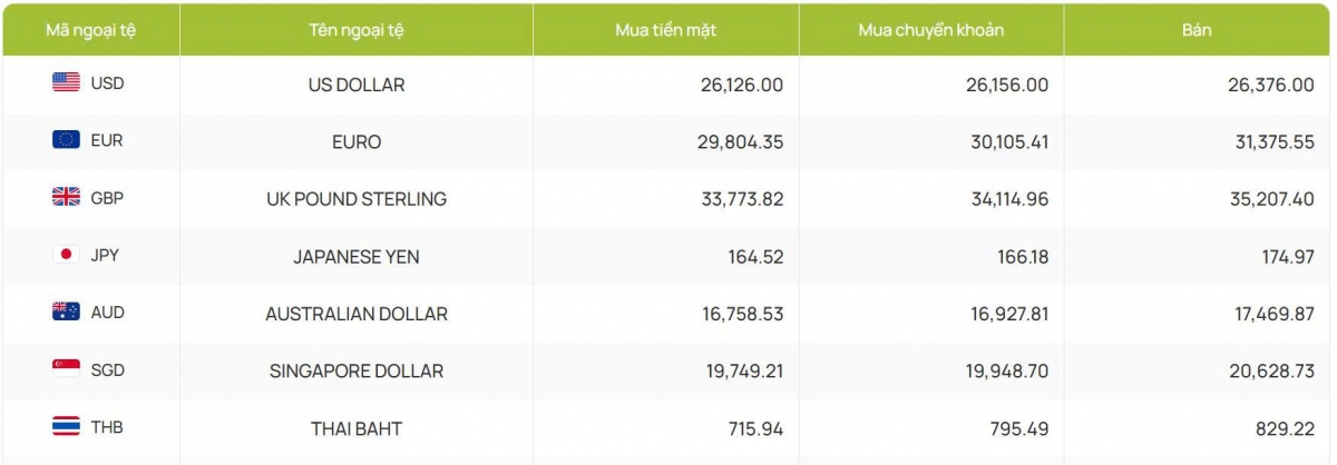 Còn ACB hiện giao dịch với 26.150 đồng/USD mua vào và 26.376 đồng/USD bán ra, giữ nguyên giá mua và giá bán hạ xuống thấp hơn phiên trước 2 đồng.