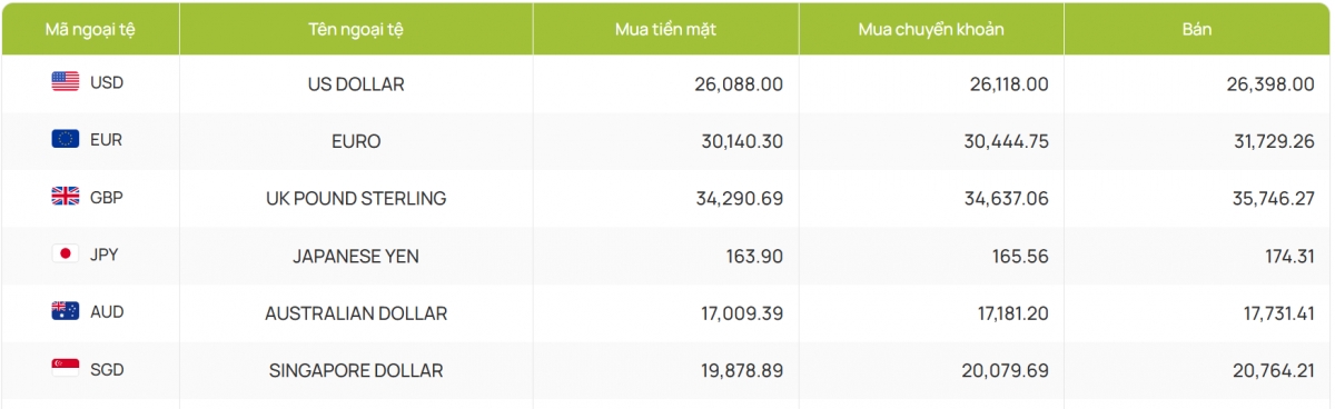 Cụ thể, ngân hàng Vietcombank sáng nay công bố giao dịch ở mốc 26.093 - 26.403 đồng/USD (mua vào và bán ra), tăng 5 đồng cả hai chiều so với phiên trước.