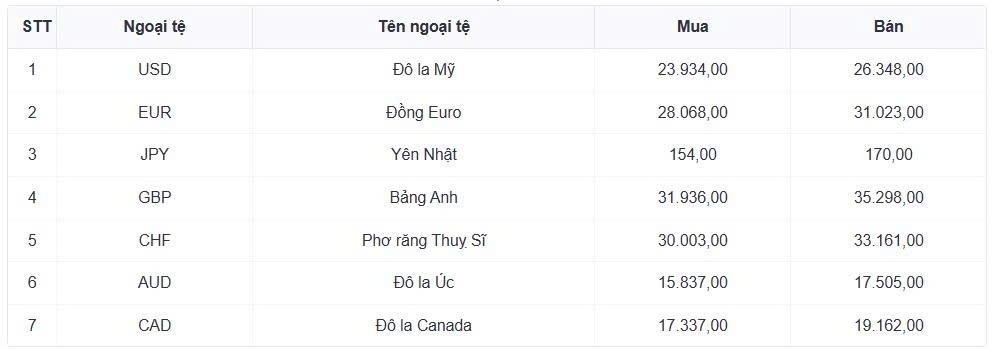 Tỷ giá các ngoại tệ mạnh khác trong giỏ thanh toán quốc tế, tại Ngân hàng Vietcombank được niêm yết như sau: