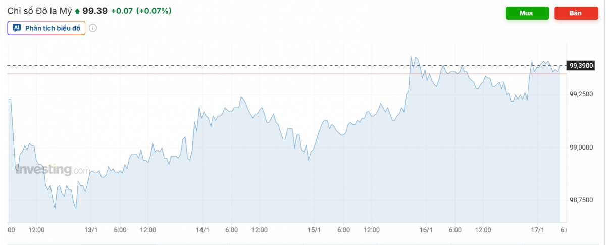 Trên thị trường thế giới, chỉ số USD index (DXY) biến động chậm lại, hầu hết dao động quanh mốc 99 điểm. Cập nhật chiều tối Chủ Nhật, chỉ số USD index (DXY) đạt mốc 99,39 điểm.