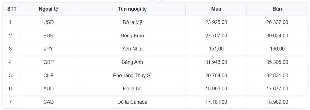 Tỷ giá tham khảo giữa đồng Việt Nam và các loại ngoại tệ tại Cục Quản lý dự trữ ngoại hối nhà nước như sau:
