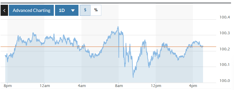 Biểu đồ biến động Chỉ số DXY trong 24 giờ qua. Ảnh: Marketwatch