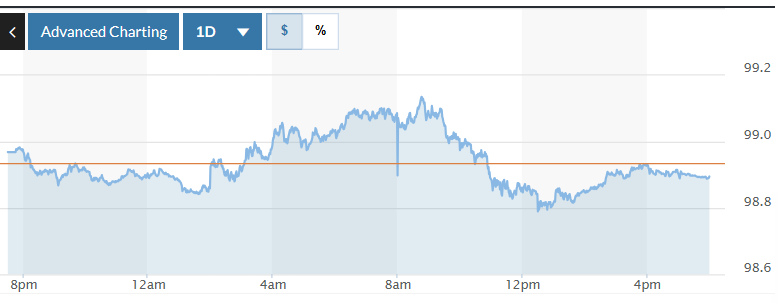 Biểu đồ biến động Chỉ số DXY trong 24 giờ qua. Ảnh: Marketwatch