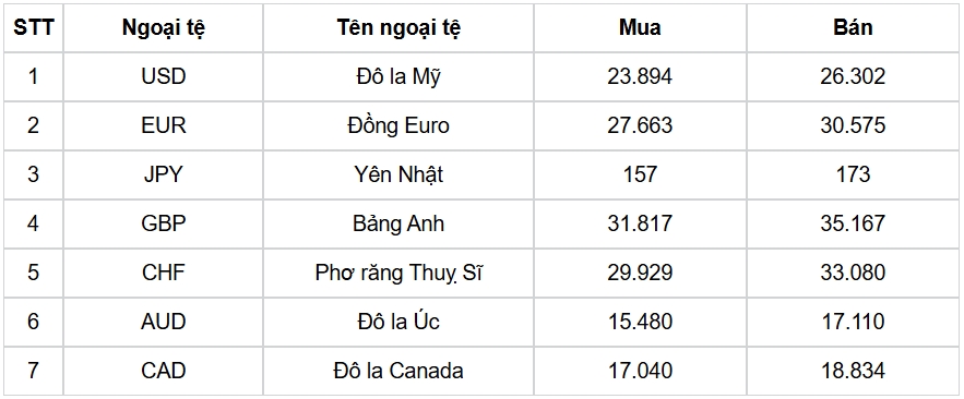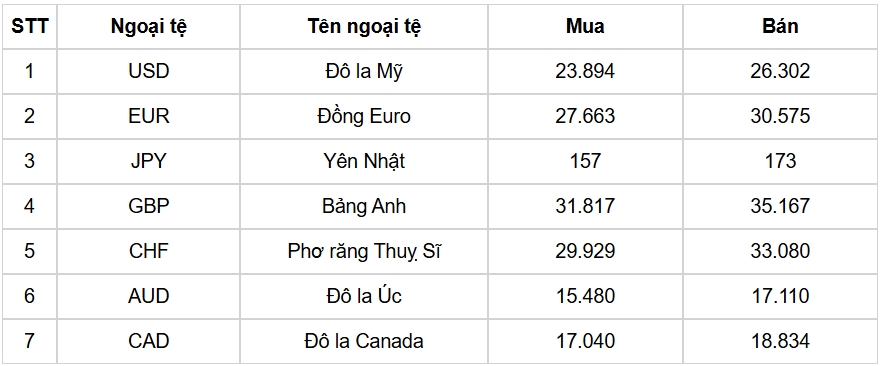 Tỷ giá các ngoại tệ mạnh khác trong giỏ thanh toán quốc tế, tại Ngân hàng Vietcombank được niêm yết như sau: