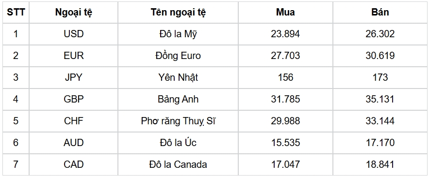 Tỷ giá các ngoại tệ mạnh khác trong giỏ thanh toán quốc tế, tại Ngân hàng Vietcombank được niêm yết như sau: