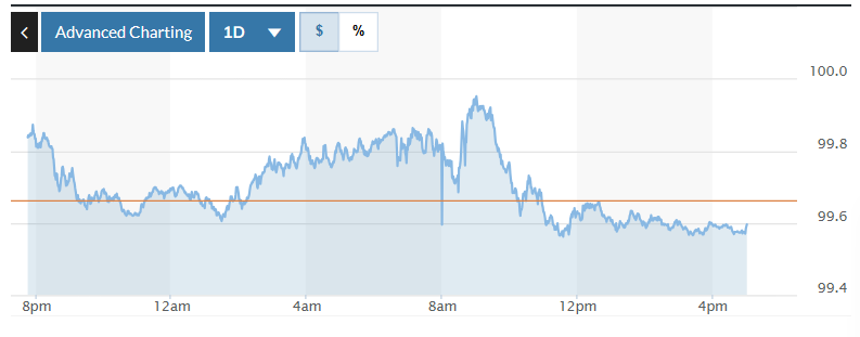 Biểu đồ biến động Chỉ số DXY trong 24 giờ qua. Ảnh: Marketwatch