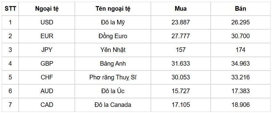 Tỷ giá các ngoại tệ mạnh khác trong giỏ thanh toán quốc tế, tại Ngân hàng Vietcombank được niêm yết như sau: