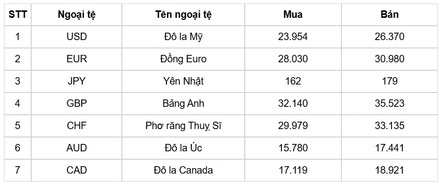 Tỷ giá các ngoại tệ mạnh khác trong giỏ thanh toán quốc tế, tại Ngân hàng Vietcombank được niêm yết như sau: