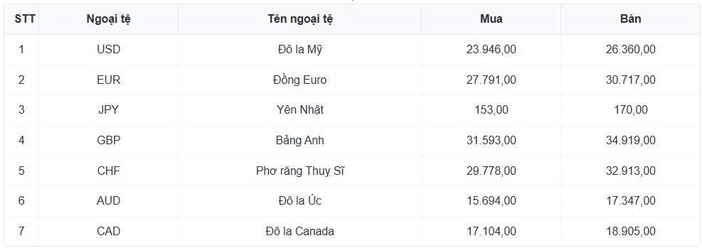 Tỷ giá các ngoại tệ mạnh khác trong giỏ thanh toán quốc tế, tại Ngân hàng Vietcombank được niêm yết như sau:
