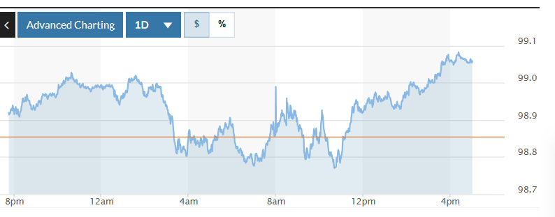 Biểu đồ biến động Chỉ số DXY trong 24 giờ qua. Ảnh: Marketwatch