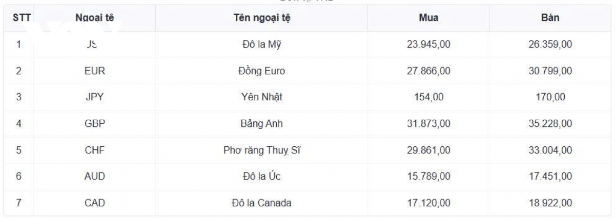 Tỷ giá tham khảo giữa đồng Việt Nam và các loại ngoại tệ tại Cục Quản lý ngoại hối: