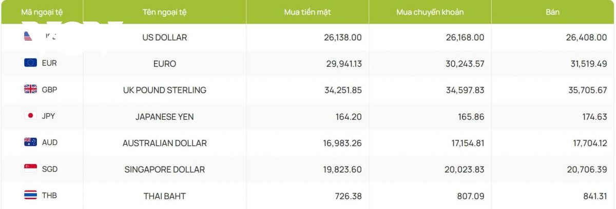 Còn ACB bắt đầu hôm nay với 26.170 đồng/USD mua vào và 26.408 đồng/USD bán ra, không điều chỉnh mới giá mua còn giá bán thấp hơn phiên trước 1 đồng.