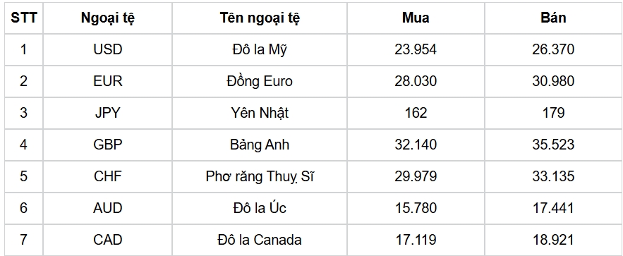 Tỷ giá các ngoại tệ mạnh khác trong giỏ thanh toán quốc tế, tại Ngân hàng Vietcombank được niêm yết như sau: