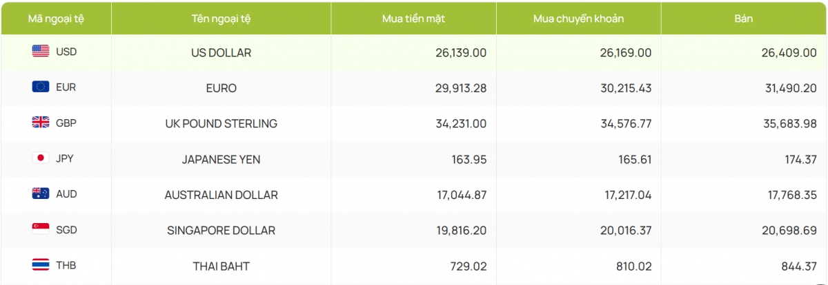 Ngân hàng Vietcombank niêm yết tại 26.051 - 26.381 đồng/USD (mua vào và bán ra), giữ nguyên cả hai chiều so với phiên trước.