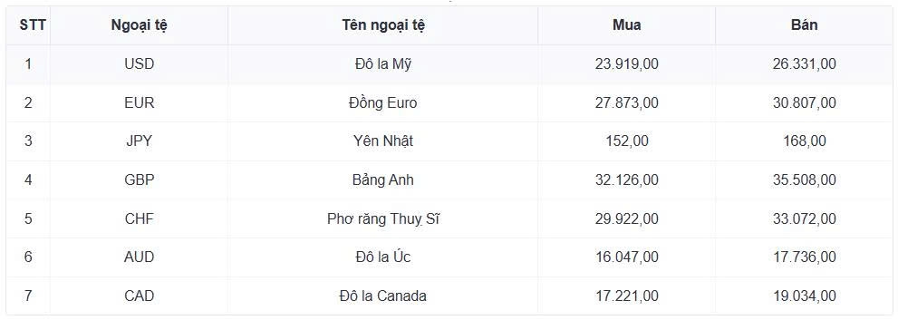 Tỷ giá tham khảo giữa đồng Việt Nam và các loại ngoại tệ tại Cục Quản lý dự trữ ngoại hối nhà nước như sau: