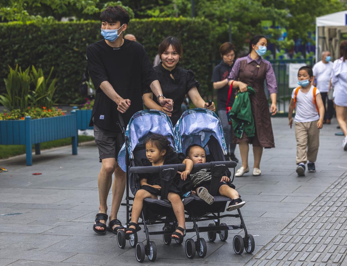 Gia đình có trẻ nhỏ đi dạo ở công viên Trung Quốc. Ảnh: SCMP