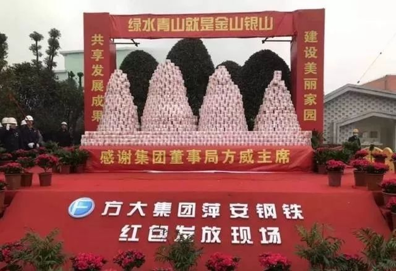 Tại tỉnh Liêu Ninh, Tập đoàn Phương Đại (Fangda Group) mỗi năm đều tái hiện một cảnh tượng khiến người ta kinh ngạc: Tại các trụ sở công ty trực thuộc đều dựng lên một “bức tường tiền mặt” cao mấy mét được xếp từ những cọc tiền mệnh giá 100 Nhân dân tệ (NDT), gần 130.000 nhân viên xếp hàng nhận khoản thưởng cuối năm của mình. Cảnh tượng này không chỉ trở thành tiêu điểm truyền thông mà còn là hình ảnh thu nhỏ cho phong cách hào phóng của người đứng đầu tập đoàn – ông Phương Uy.