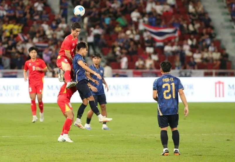 U-22 Thái Lan chơi bóng khắp mặt sân, kéo giãn đội hình U-22 Việt Nam bằng những đường chuyền dài, trung bình, chéo sân... và điều này đã “xé” các bài bản của đội khách. Cụ thể hóa cho sự lợi hại trong đấu pháp này giúp U-22 Thái Lan có bàn thắng phút 20 từ pha đá phạt mẫu mực của Yotsankon. Anh đưa bóng bay hình quả chuối lượn qua hàng vào rồi bay như kẻ chỉ sát cột, khiến thủ môn Trung Kiên khuất hàng rào không phản ứng kịp.